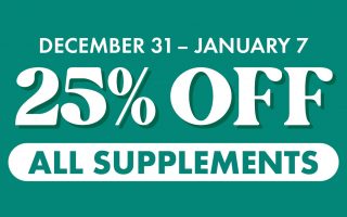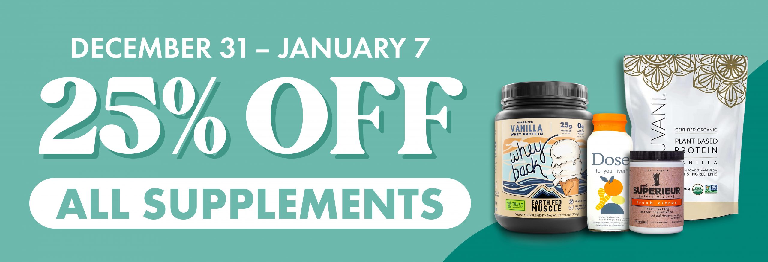 December 31 through January 7 take 25% off ALL Supplements throughout our Apothecary department. Plus, find even bigger savings on some of our most popular items.
