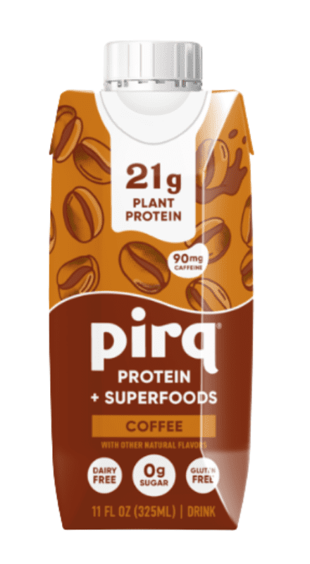 Boasting 21g of plant-based protein, 4g net carbs, and 0 sugar, Pirq protein drinks also contain a powerful blend of 26 fruits, veggies, adaptogens, and curcumin which is known to reduce inflammation, boost immunity, and support digestion. They’re also gluten-free, non-GMO, dairy-free, soy-free, vegan, and kosher. Vanilla Plant Protein Drink, Chocolate Plant Protein Drink, and Strawberry Plant Protein Drink are also available in singles and 4pk’s.