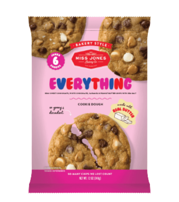 The cookie that truly has everything! Loaded with semi-sweet chocolate, white chocolate, caramel, and peanut butter chips—finished with a sprinkle of sea salt. They’re made with real butter and no artificial flavors. These jumbo 5-inch cookies are gooey and decadent and are ready to bake. Just pop them in the oven and enjoy 6 bakery-style cookies in 15 minutes. Triple Chocolate Cookie Dough is also available.