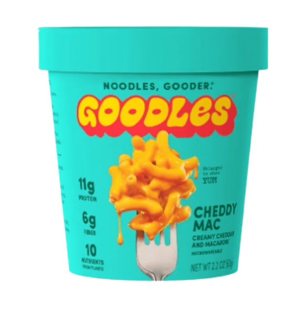 This classic, creamy cheddar mac cup tastes like your childhood, eats like a balanced meal, and microwaves in minutes. Each cup boasts 11g protein, 6g of fiber with prebiotics, 10 plant-based nutrients, real cheese, and no artificial flavors. Shella Good Mac N Cheese Cup, Shell We Dance Deluxe and Ched Over Heels Deluxe, Vegan Is Believin‘, Gluten-Free Vegan Be Heroes, Gluten-Free Cheddy Mac, and Smokey Dokey Mac N Cheese are also available.
